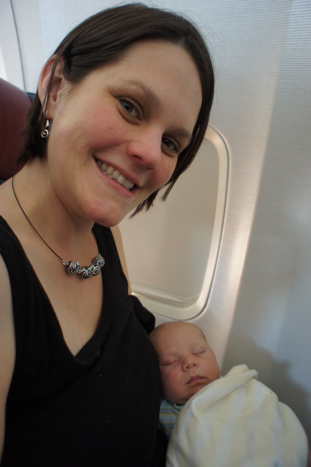 – been on a plane (see below) (thankfully he slept the whole trip!!!)