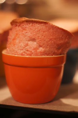 My second baking venture for the week was in aid of using the up 5 egg whites (after only using the yokes for the mousse) and since strawberries are cheap as at the moment, a soufflé was on the cards. I served these babies up for dessert with friends on Thursday night, after serving a very tasty Guinness Stew for dinner. I’ll let the photos tell you a bit more!
