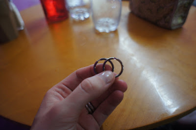 Hubs and I celebrated our wedding anniversary a week late this year, with a lovely lunch at The Idle Book Cafe in downtown Wang, and the exchanging of gifts. Hubs gave me two gorgeous titanium tension-set rings that he ordered off an etsy site that I just happened to leave open on the computer. Hee hee! He gave me one with a mystic topaz stone in it for the birth of our baby boy (topaz is the birth stone for November) and one with alexandrite in it for our 3 year anniversary, just cos he liked it.