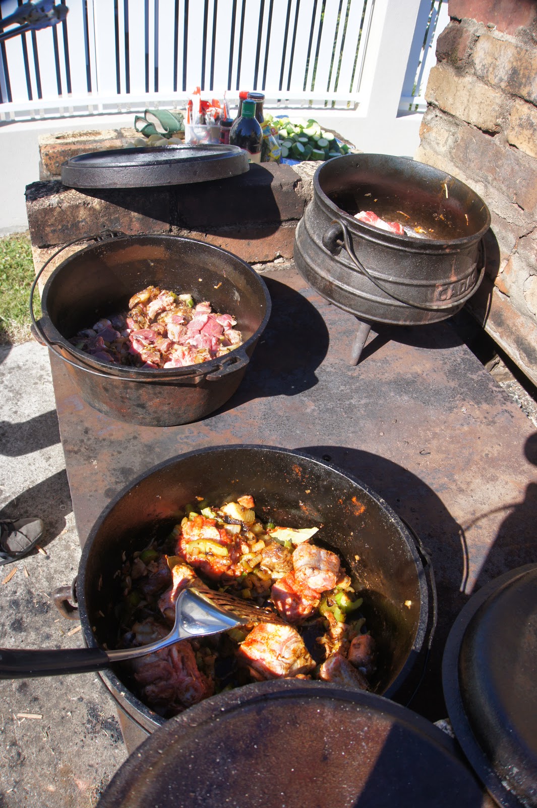 Saturday, the day of the party rolled around, and there was lots of preparation to be done for the 4 potjies we put on. Okay okay, Hubs put on! I was his Sous-Chef for the day and just did what I was told (within reason…) He was the master of ceremonies though, and did an amazing job keeping everything bubbling away.