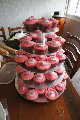 … as the centrepiece: 70 cupcakes; a mixture of chocolate and red velvet, delicately decorated with teeny tiny feet: