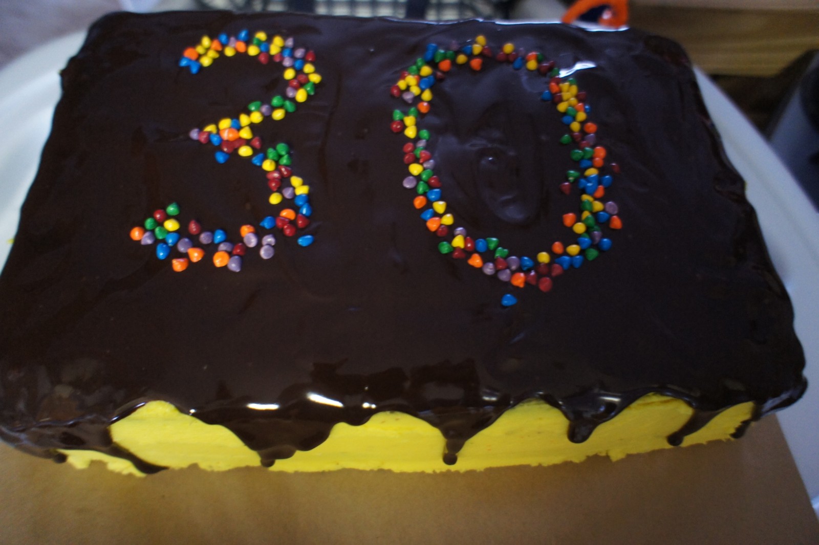 So Saturday was spent with a walk into town, a visit to the local Tavern, and a push home in the stroller. (I had driven Chance home earlier.) Oh, and Hubs’ last birthday cake for this year.