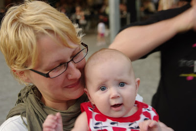 We had kept the evening plan-free just in case of a pre-wedding dinner, so when the bride and groom decided to just have a quiet night in, we arranged for Hubs’ Mum, sister and kids to come on over for dinner at my parent’s place. In the mean time, we hung around town for a bit and grabbed a coffee and just chilled out together. It was really lovely being back in our old stomping ground and enjoying the lovely warm weather. We were talking about who we might run in to, as is inevitable whilst in Brisbane. And sure enough, on our way to the rendezvous point to meet my Mum for our lift home, we ran into very good friends of mine and their 6 month old daughter whom I hadn’t met yet!
