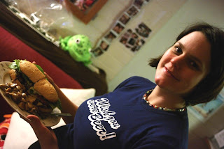 You see, my Hubsband is a man of simple pleasures. As I’m sure I’ve mentioned, he is easy to please, but difficult to impress. This goes for most aspects of his life, but in particular, with food. Of course I was happy to oblige. So we swung by Coles and picked up some salad stuff, knowing I had the main makings of the burgers at home. And with a few mushrooms on the side, they really hit the spot. I’ve been making roo burgers for over 2 years now, and I think I’ve pretty much perfected them! Not that I like to brag or anything. We devoured the burgers and topped off a great meal with leftover cake and ice cream, while watching the last episode of The Hollowmen, and a ep of Daria.